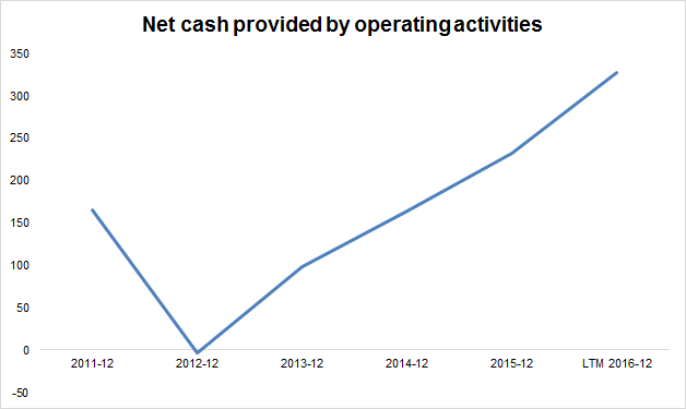 3. The cash flow from operating activities has been rising for more than four years! In this year, the figure has increased by more than 41%.