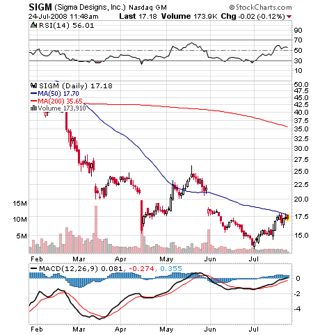 - Sigma was downgraded from $48 to $20 by UBS in early June on slower business and lack of a near-term catalyst
